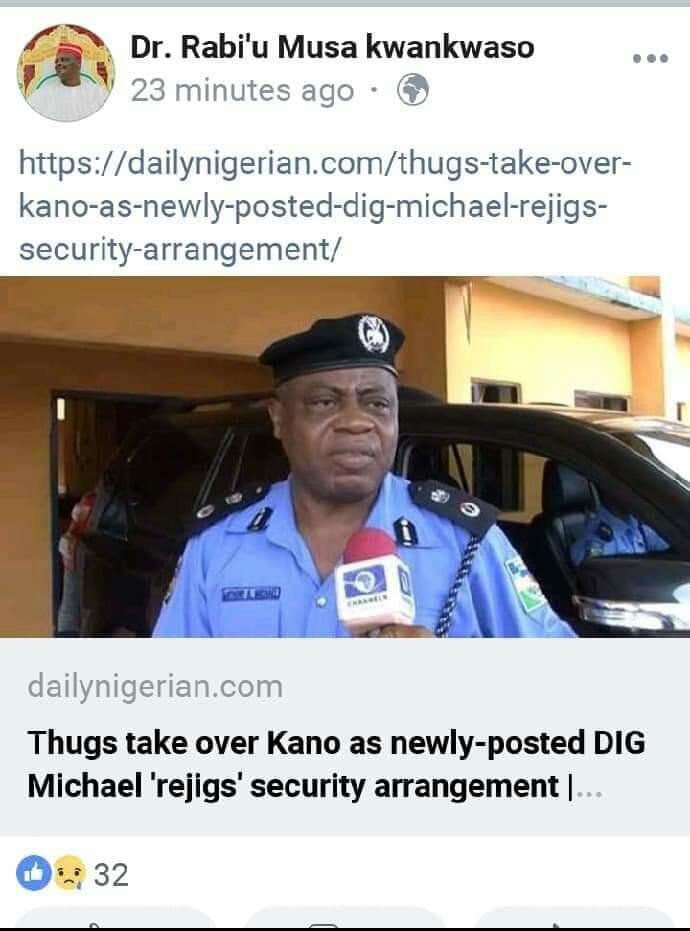 Former governor of Kano State, Rabiu Kwankwaso, of the PDP, is a big political godfather in Kano. His Kwankwasiyya political fan club has a large following in Kano and other northern states. He did defect to PDP when he fell out with his former ally and successor governor Umar Ganduje, of the APC. Kwankwaso did not seek re-election into the Senate.